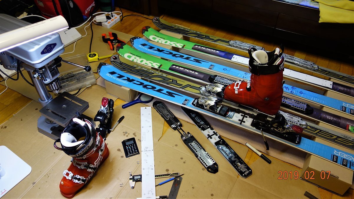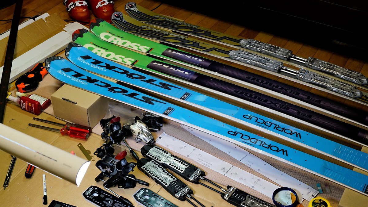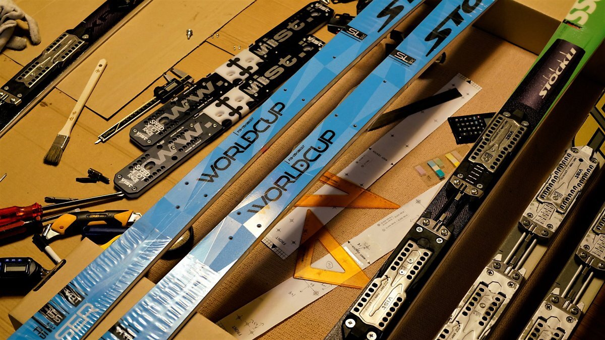 'Stockli 2019 Laser SL FIS' 미드솔 피팅과 바인딩 마운트 작업.